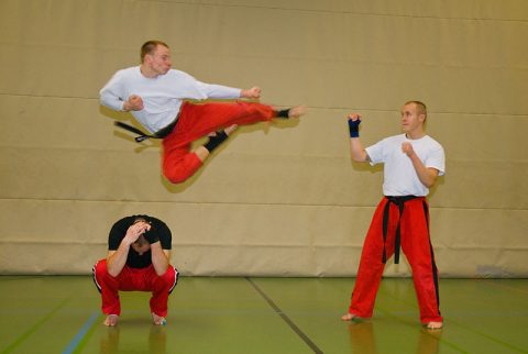 Johannes Schmitz zeigt Yoko Geri Tobi, Weihnachtslehrgang, Göttingen, Deutschland