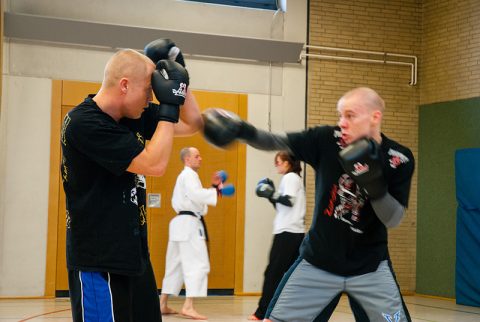 Kickbox-Training mit Johannes Schmitz, Karateverein Zanshin G?ttingen, Weihnachtslehrgang mit Sven Grote, Timm Lohmann, Steve Mosmondor und Johannes Schmitz, G?ttingen, Deutschland